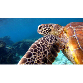 Christian: „Schwimmen mit Schildkröten genauer gesagt „Green Turtles“ im glasklaren Wasser vor einer Koralleninsel.“